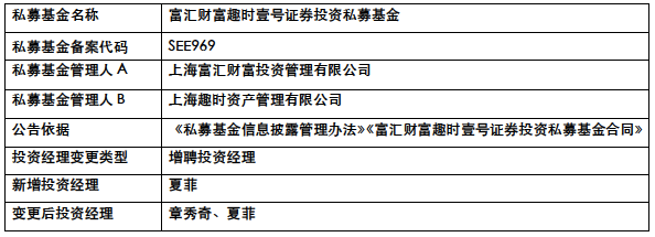 关于富汇财富趣时壹号证券投资私募基金:新增投资经理的公告